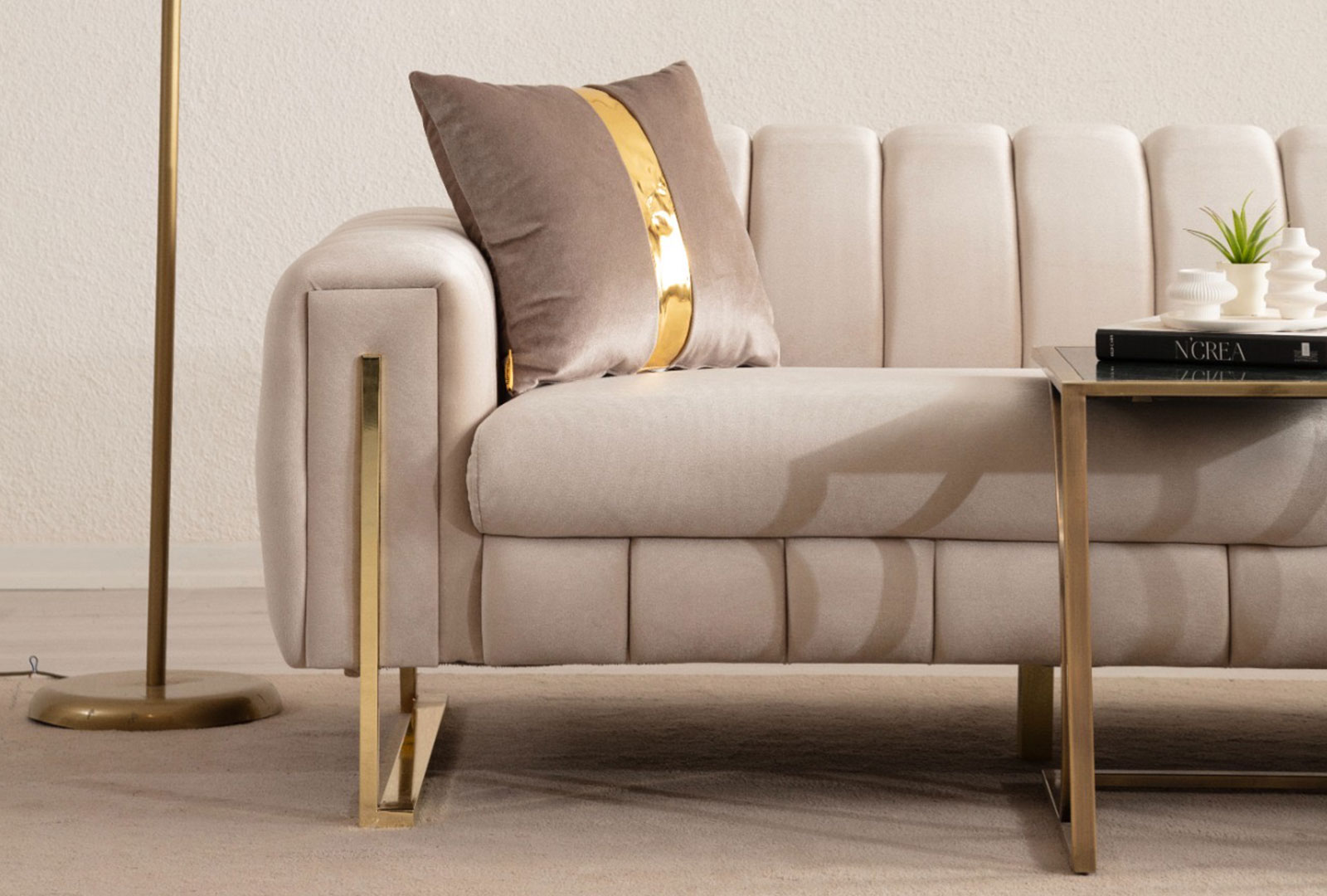 This furniture set, distinguished by its modern lines and elegant details, is crafted from high-quality materials for long-lasting use. It adds elegance to your home while also providing comfort.