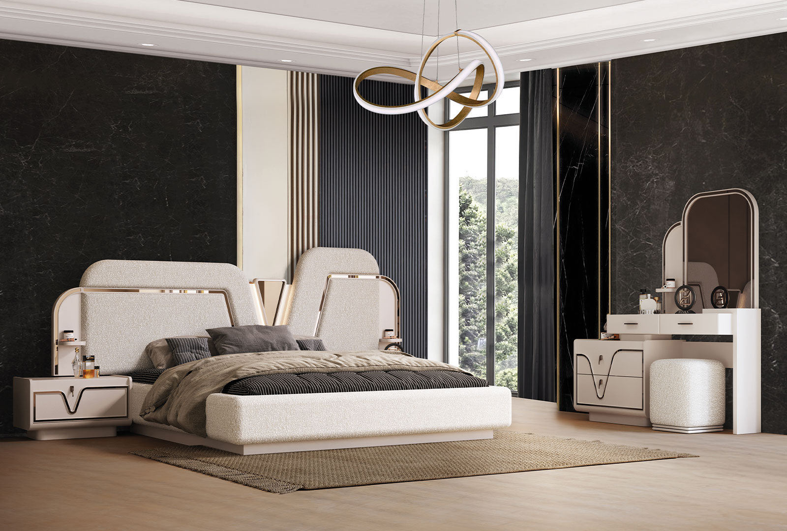 Asel Yatak Odası, zarafet ve konforu bir araya getirerek yaşam alanınıza huzurlu bir atmosfer kazandırır. Modern çizgileri, yumuşak renk tonları ve özenle işlenmiş detaylarıyla estetik bir görünüm sunar. Geniş depolama alanına sahip gardırop, şık başlık tasarımı ve fonksiyonel komodinleriyle hem şıklığı hem de kullanım kolaylığını ön planda tutar. Kaliteli malzeme ve ince işçilikle üretilen Asel Yatak Odası, uzun ömürlü kullanım sunarken, her tarz dekorasyona uyum sağlayan zamansız bir tasarım ortaya koyar. Rahat, düzenli ve şık bir uyku alanı yaratmak isteyenler için ideal bir tercihtir.