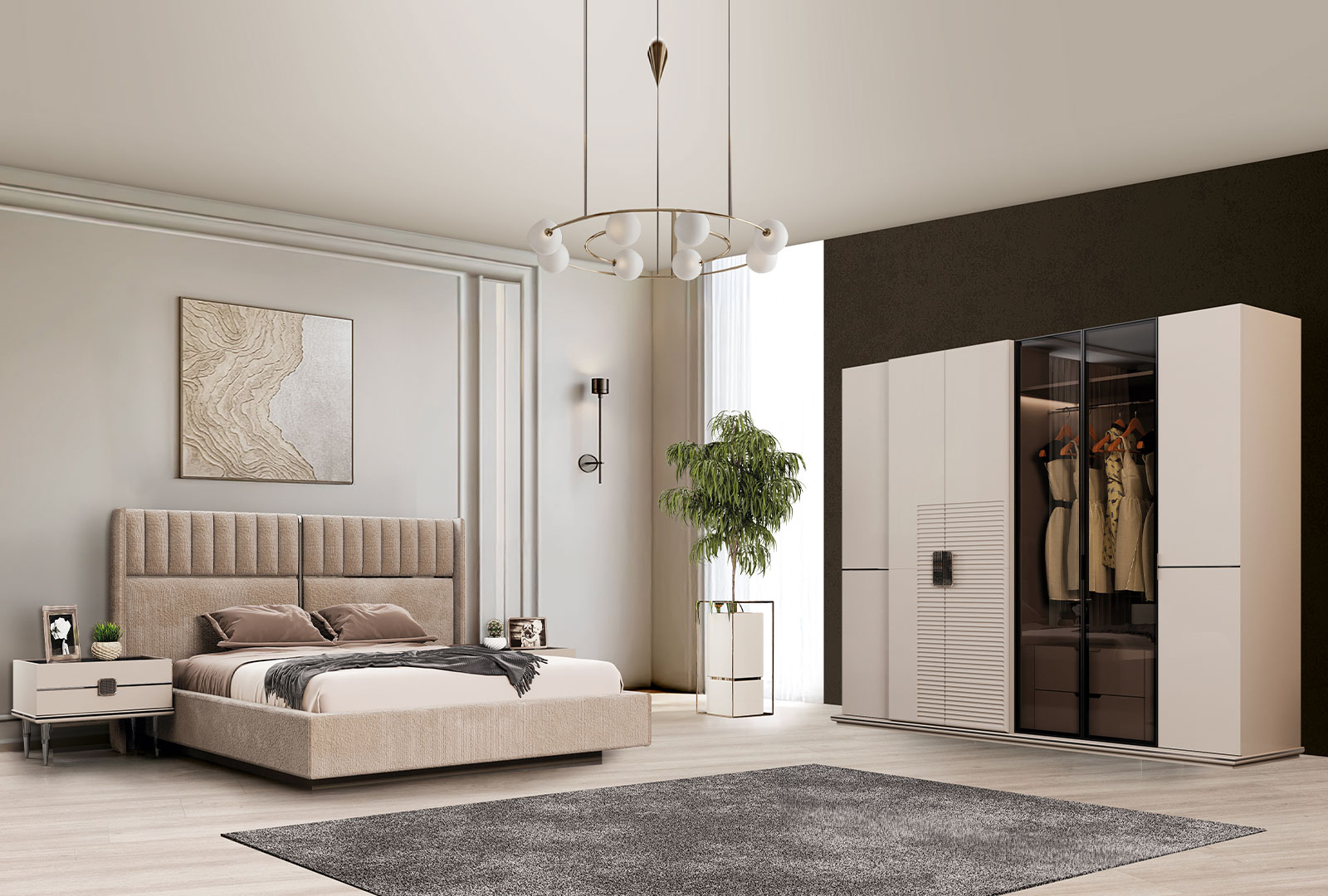 Estetik çizgileri ve kullanışlı yapısıyla yatak odanıza şıklık katan bu takım, modern dokunuşlarıyla huzurlu ve konforlu bir atmosfer sunar.